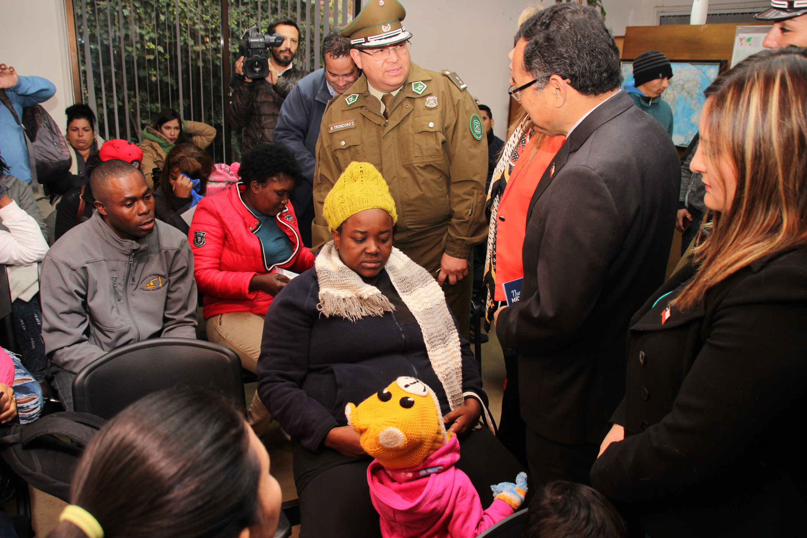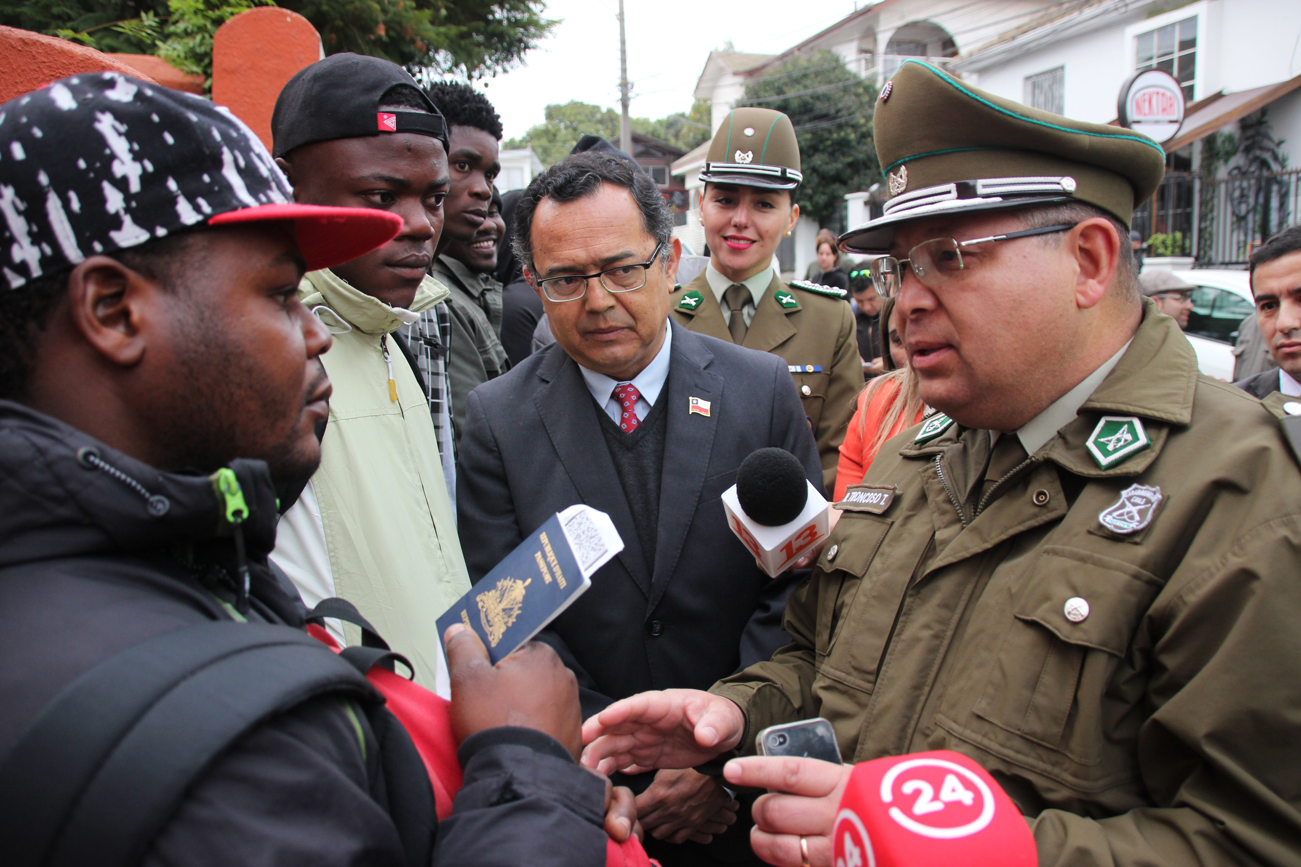 El intendente estableció un diálogo directo con las personas, especialmente haitianos que hacían fila esperando su turno para ser atendidos, para lo cual contó con la colaboración del prefecto de Carabineros de Marga-Marga, teniente coronel Roberto Troncoso, quien ofició de traductor, ya que aprendió el creole tras permanecer dos años en misión de paz en Haití.