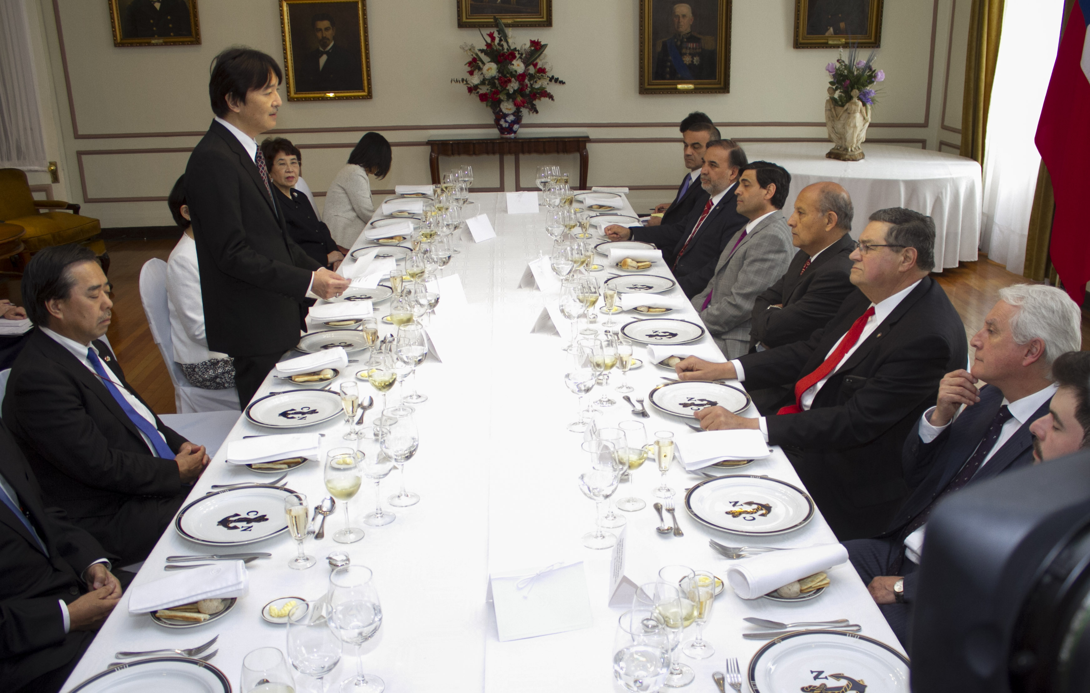 La autoridad regional, junto al presidente del Consejo Regional, Rolando Stevenson y el alcalde (s) Claudio Opazo ofreció un almuerzo de recepción en los salones del Club Naval que se desarrolló en un ambiente de grata camaradería sorteando cualquier problema de comunicación merced a la participación de dos intérpretes.