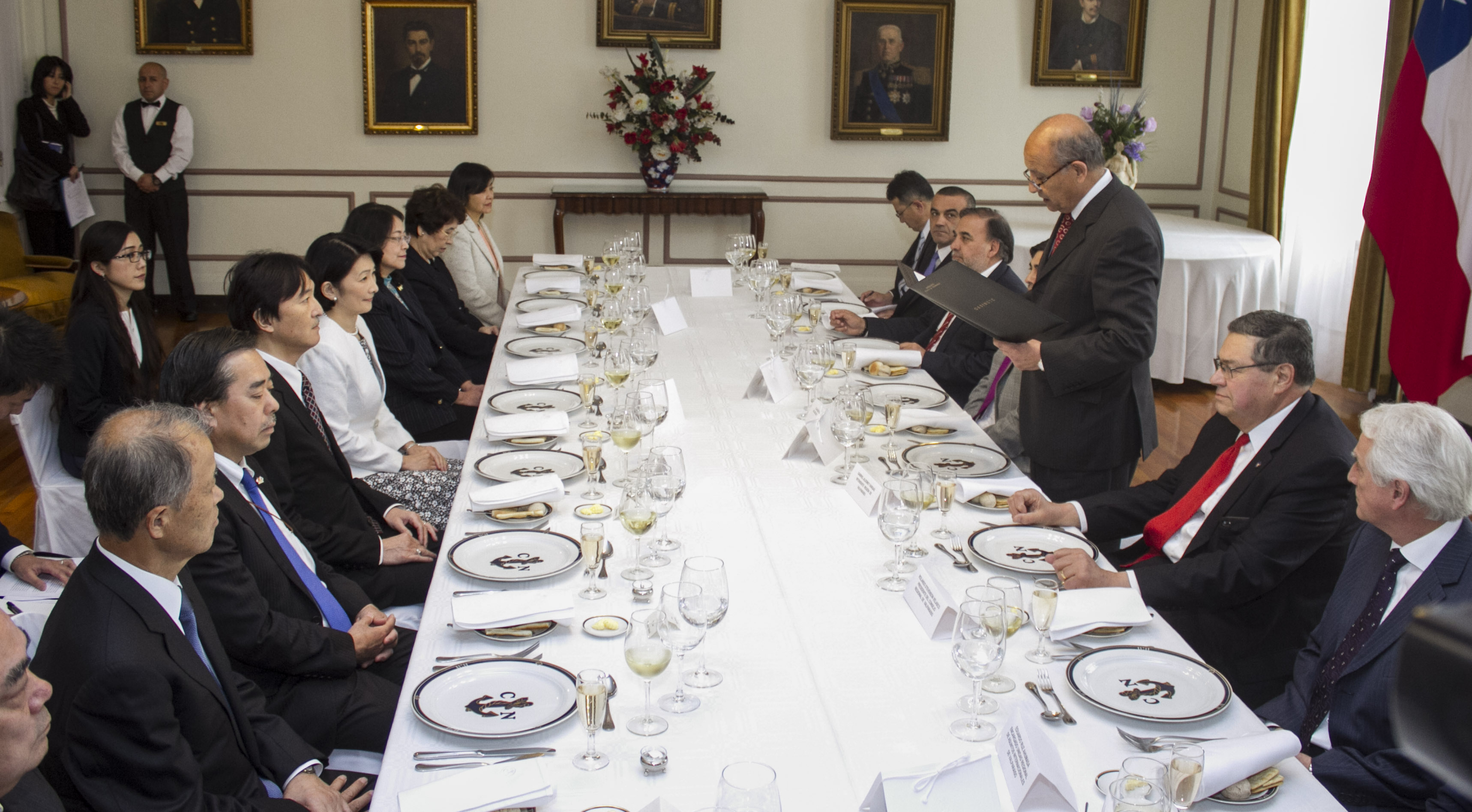 - El príncipe heredero Akishino, fue recibido oficialmente por el intendente regional, Gabriel Aldoney poniendo de relieve el cumplimiento de los 120 años desde el establecimiento de relaciones bilaterales.